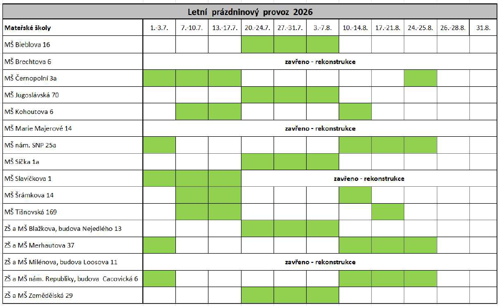 20 / 12 / 2025 skolka Letní prázdninový provoz školek Brno - sever v roce 2026.Žádost o přijetí.Pokyny k přihláškám.